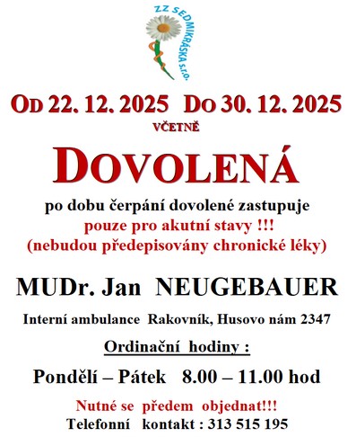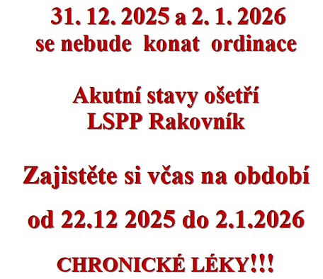 - V případě akutních, život ohrožujících zdravotních potíží, neodkladně kontaktujte linku 155, nebo 112!!!